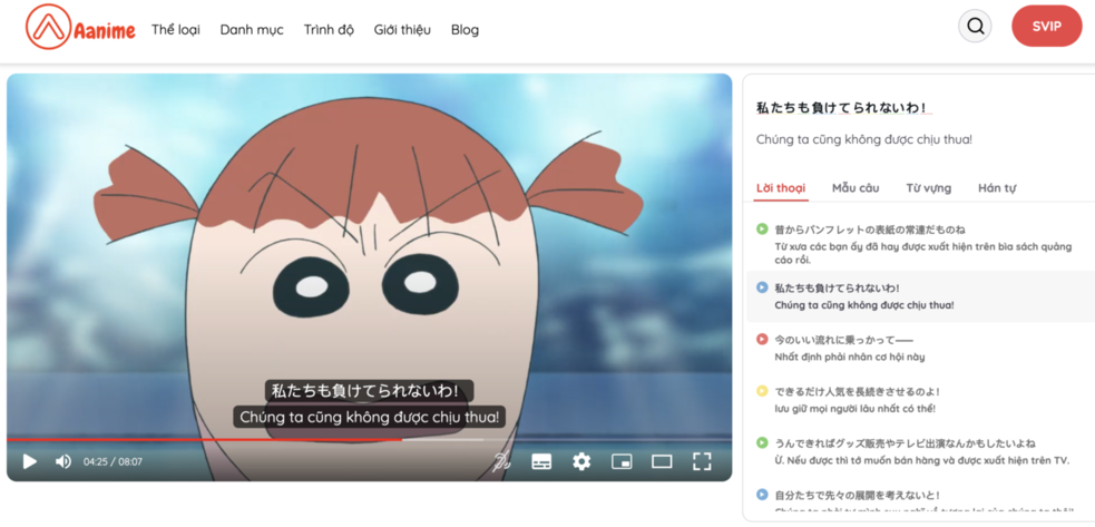 👉 Aanime.tv cung cấp hệ sinh thái học tiếng Nhật qua anime: