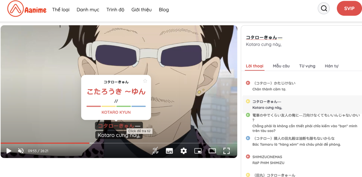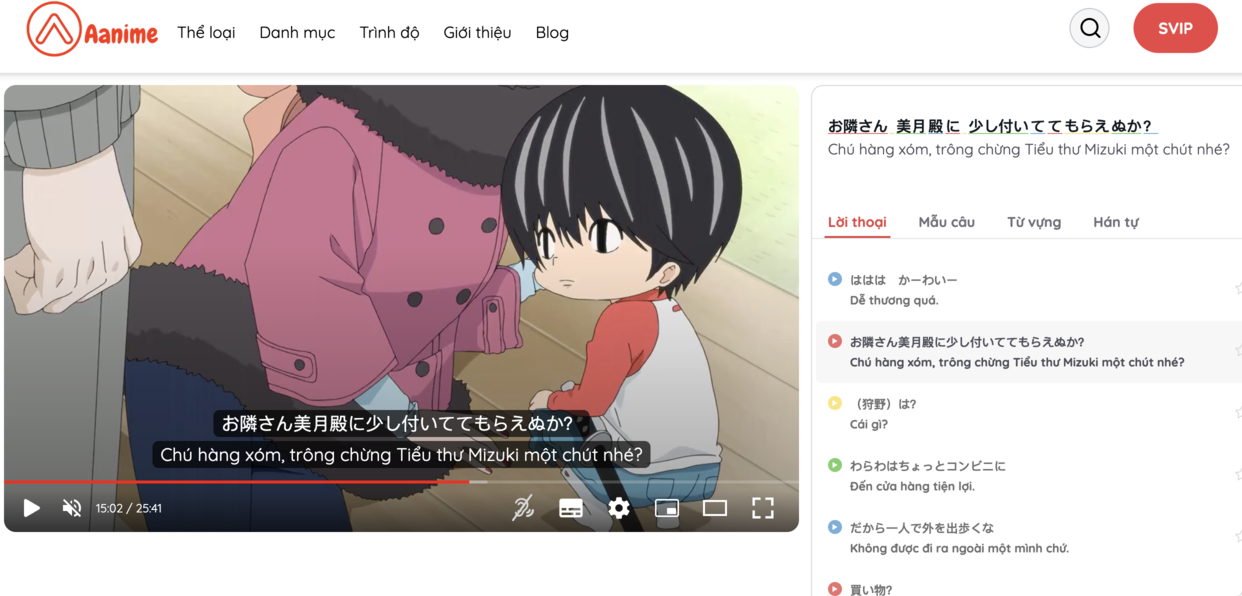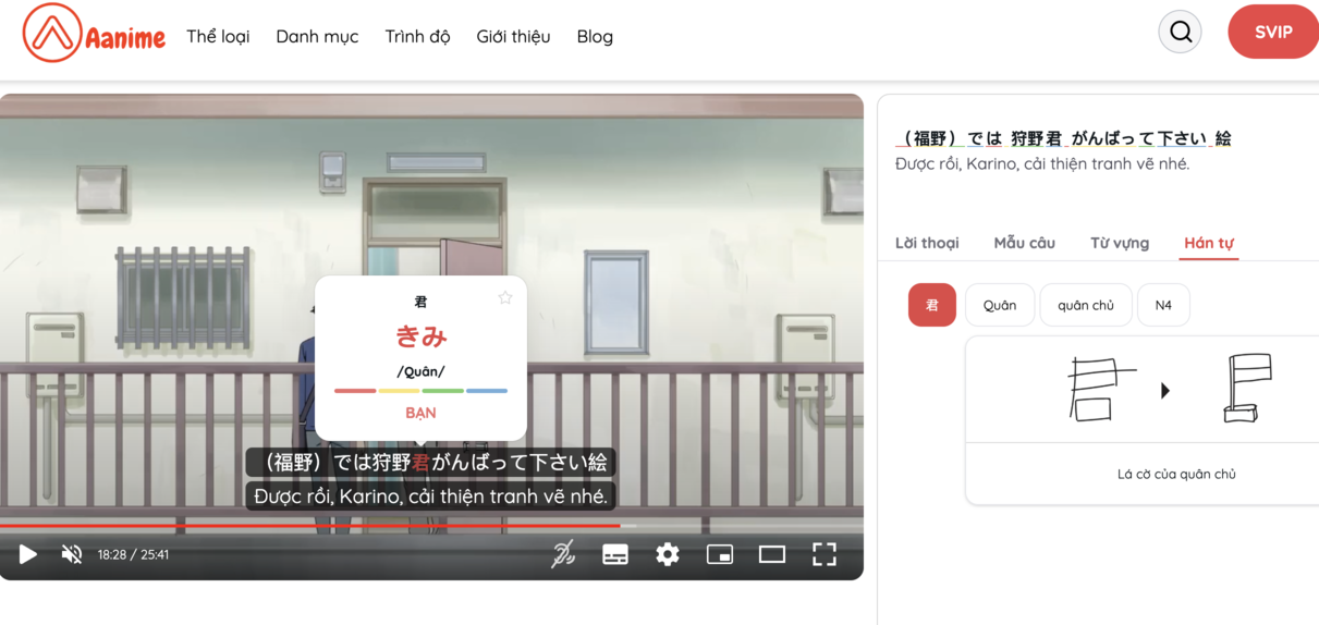 Aanime là kênh học Tiếng Nhật qua phim có phụ đề song ngữ dành cho người Việt
