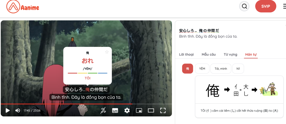 Aanime.tv hỗ trợ người học tua lại, xem lại và tra từ ngay trong video, giúp tăng tần suất tiếp xúc với từ vựng mà không làm gián đoạn trải nghiệm. Nhờ đó, việc lặp lại trở nên tự nhiên và hiệu quả hơn nhiều so với việc học thuộc lòng.
