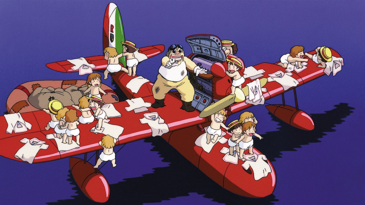 Phim Chú Heo Màu Đỏ (Porco Rosso): Bộ phim kể về câu chuyện của Porco Rosso và mối tình lãng mạn với Gina, người sở hữu và điều hành các câu lạc bộ cùng khách sạn biển dành cho phi công lái thủy phi cơ tại vùng biển Adriatic. Cốt truyện xoay quanh tình bạn giữa Porco và cô gái kỹ sư máy bay tập sự tài năng tên Fio, cùng cuộc cạnh tranh với mội phi công người Mỹ nóng tính tên Curtis. Porco bị một lời nguyền khiến mặt của ông bị biến thành heo nhưng nguồn gốc của lời nguyền này không được giải thích đầy đủ trên phim. Cho dù lời nguyền biến ông thành heo không bao giờ được giải thích đầy đủ trên phim nhưng nó có một gợi ý liên quan đến việc ông rời bỏ lực lượng không quân cũng như ý chí vượt qua cái chết khi nó đã gần kề vì người mình yêu...